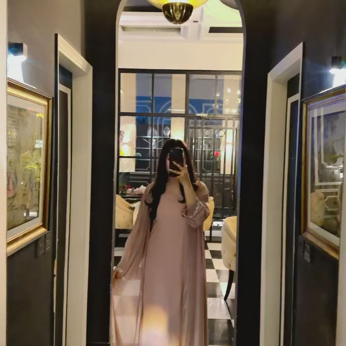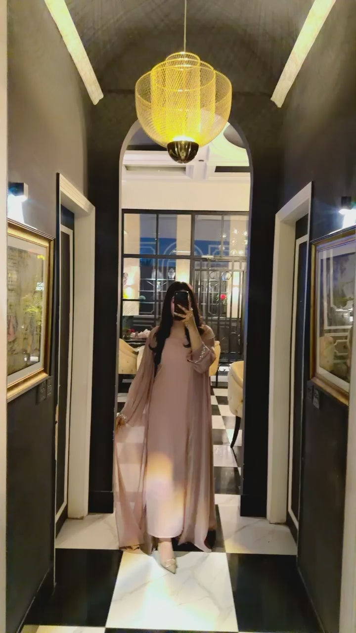 Step into timeless sophistication with our Biyara Dress, designed for graceful evenings, intimate gatherings, and special celebrations. With its flowing silhouette and soft, feminine tones, this ensemble blends modesty with modern charm.
