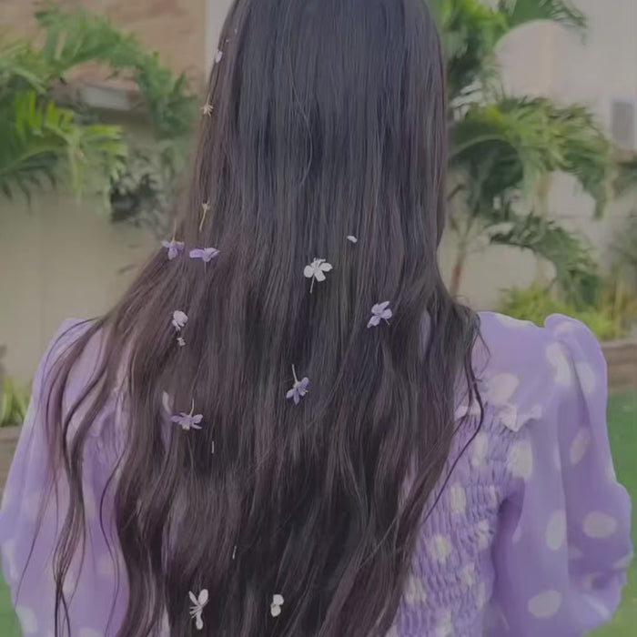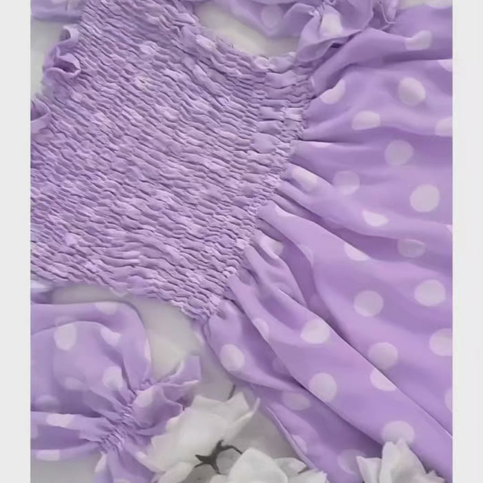 This korean style free size polka dot smocked dress is a comfortable and timeless piece that exudes pure and cute vibes. The fresh lavender color adds a touch of elegance, while the non see-through fabric ensures confidence and coverage. Comes with a matching free scrunchie for a complete look. Length: 48 inches.