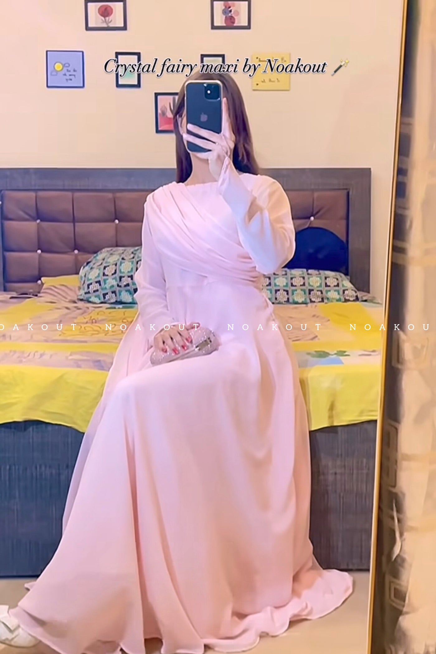 A beathtaking blend of elegance and modern charm. Crafted from premium Korean fabric, this maxi features exquisite crystal detailing on...