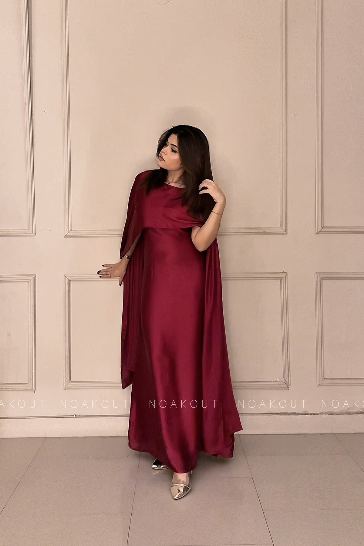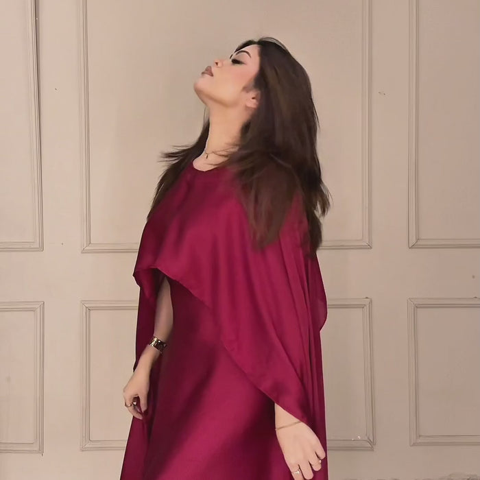 Elevate your style with our SILK CAPE SHAWL DRESS. This two-piece outfit includes a versatile cap shawl and a sleek,...